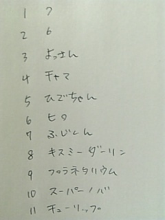 8、9、10、11番の横に、歌のタイトルをお書き下さい。